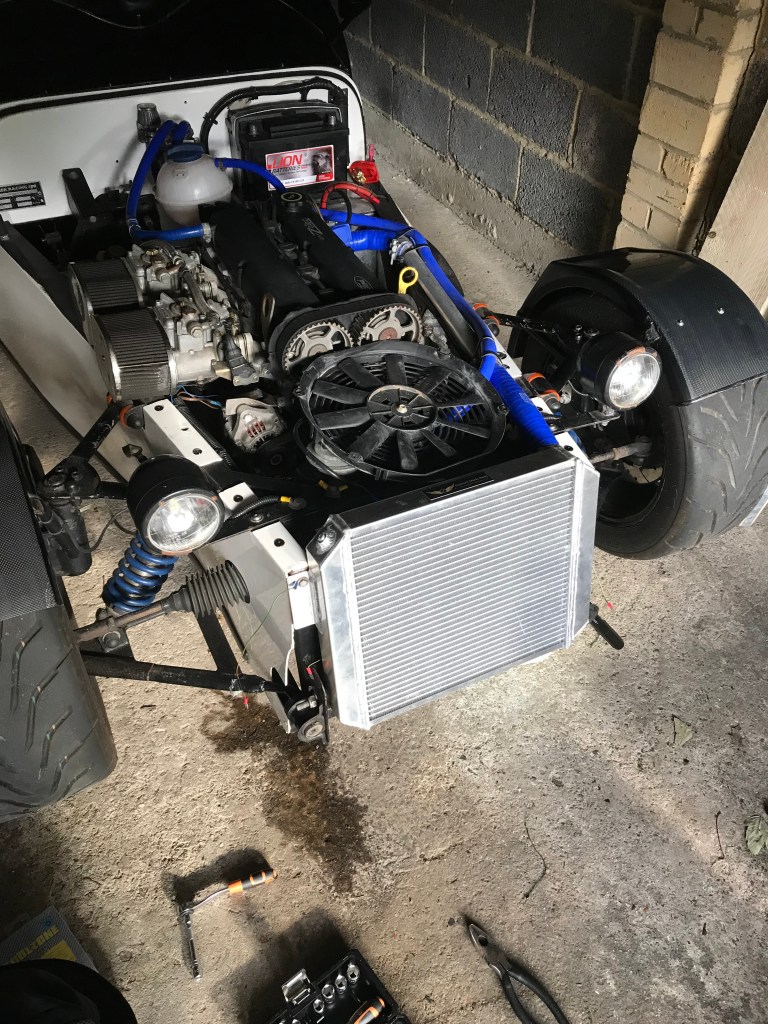 The new radiator is in and plumbed up. I’ve taken her out for a quick shake down and everything seems fine. Over the winter I want to add some type of rubber stop at the bottom of the radiator to stop it fouling on the chassis (being uber cautious!) and check to make sure the thermostat is working properly (the car might even be running a little cold!) but for now I’m happy to say this job is done. Here’s a little montage of picture of you car read the story here.