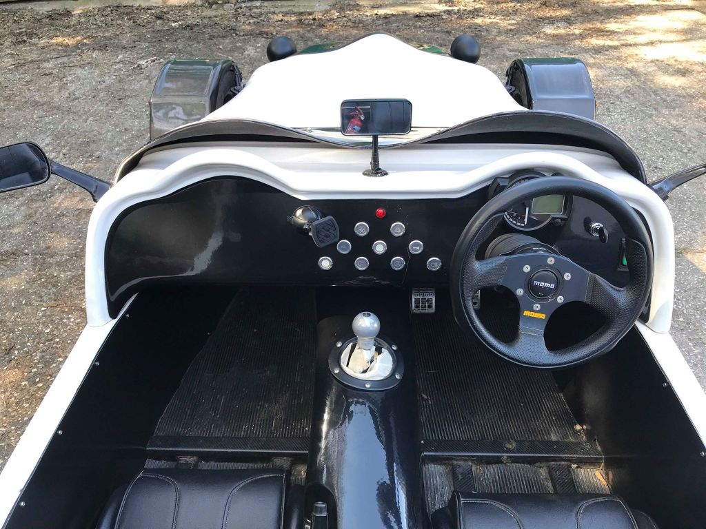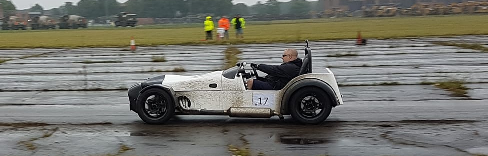 The solo was held at Abingdon Airfield and organised by Farnborough District Motorclub (FDMC). The section of the runway we were using clearly hadn’t been used by anything for quite a while as between the tarmac slabs that make up the surface there were loads of weeds… some almost 2 feet tall! Not so much of a problem except that as the day when on we tore up the weeds and mud which combined with the drizzle and a bit of oil to create and ‘interesting’ surface. Really good fun though and I had a hoot despite the fact that with no windscreen I got very muddy!