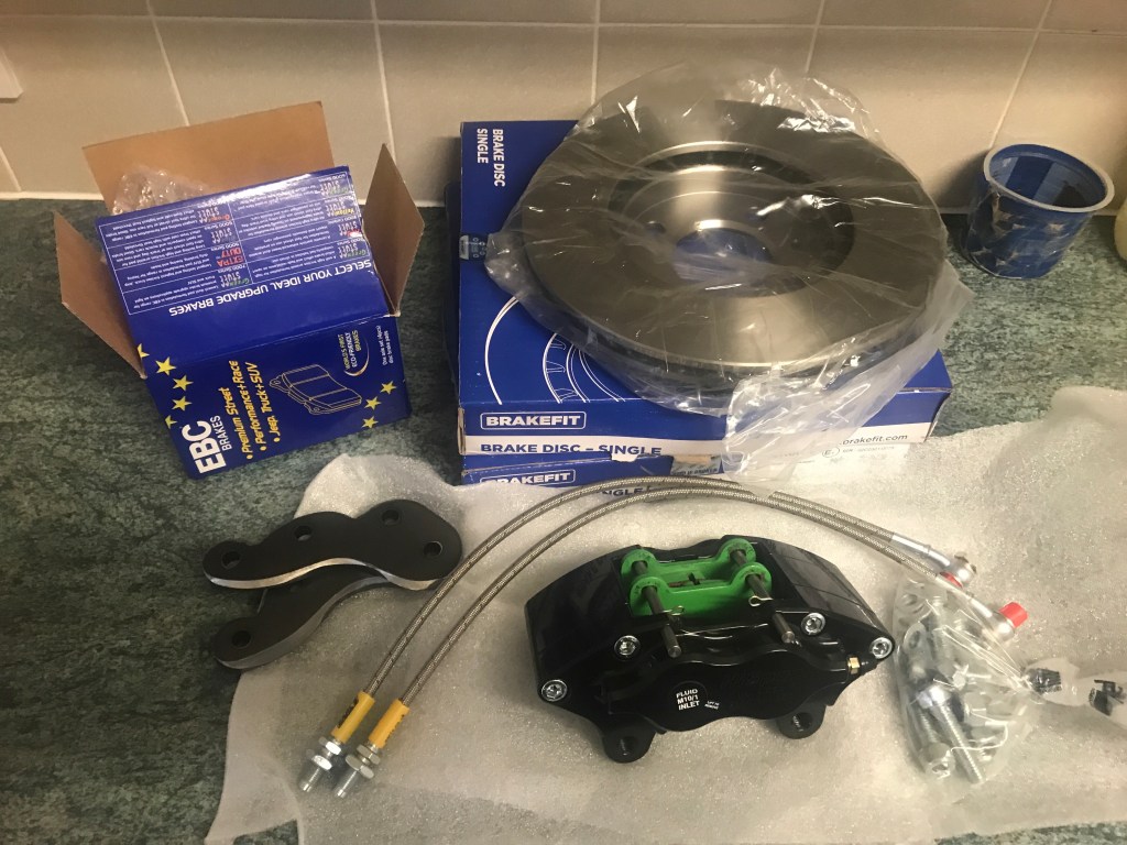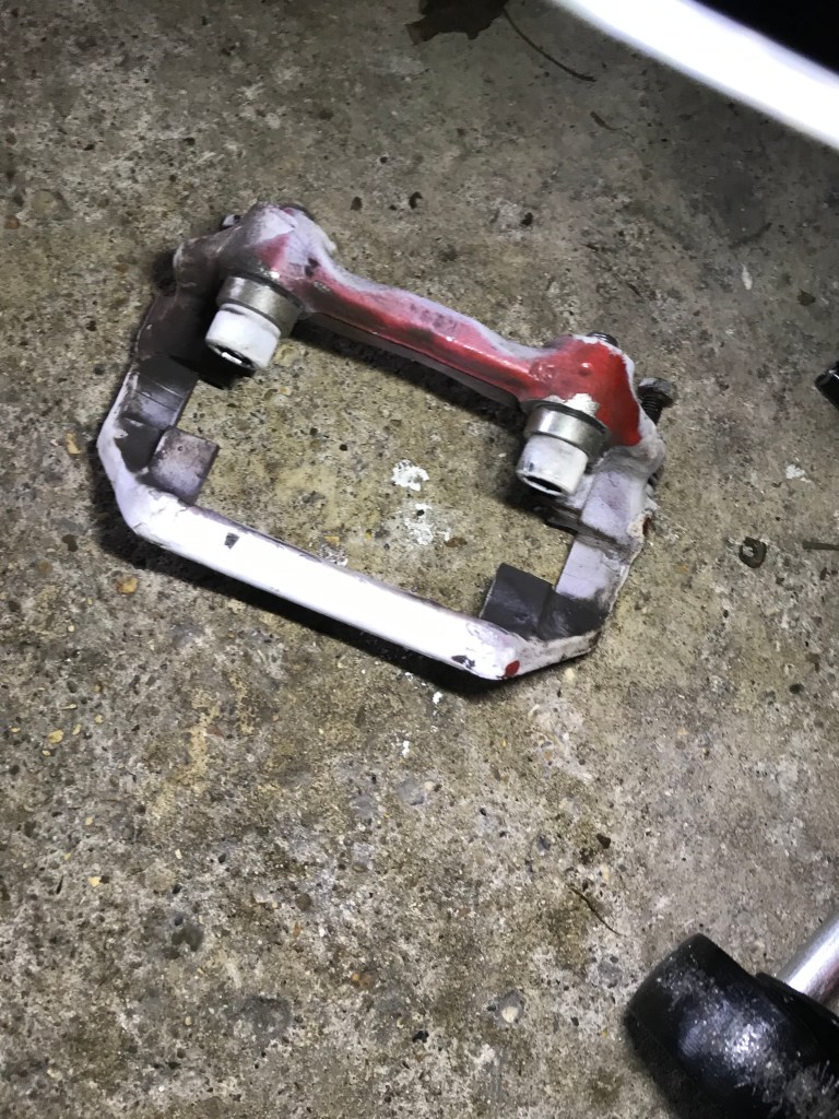 For now, I’ve put everything back together whilst I think what to do. Tiger over an uprated brake kit which I think is a real possibility in the future. It might be stretching my budget a little at the moment. I’m exploring options for sandblasting and powder coating these callipers. This is likely to be around £100.00 I reckon all in. Maybe a little less.