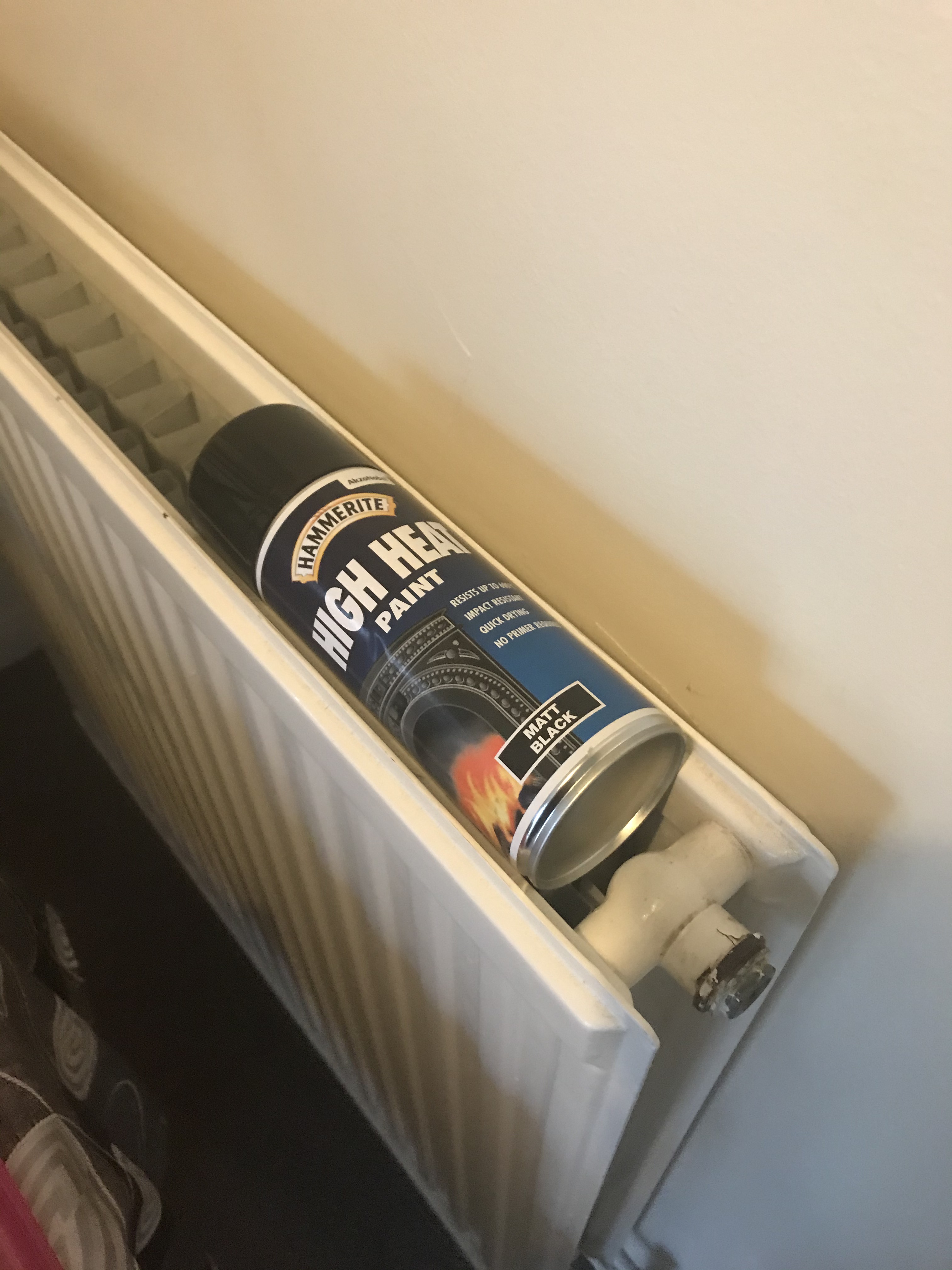 Anyway, to catch up I did paint the mounting plates with three coats of a heat resistance, matt black spray paint. I mocked myself up a little spray booth and preheated the paint on the radiator. I was pretty happy with the results: