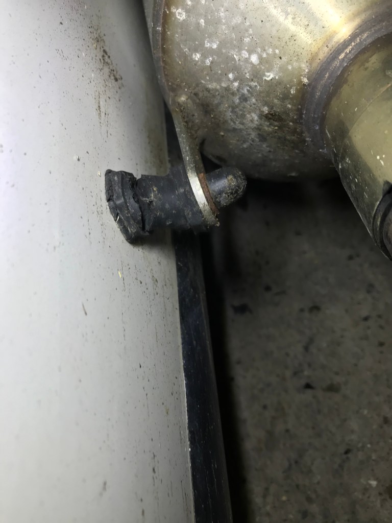 My first foray into working on the car didn’t last long! The outside of the two nuts on the rear mount is really stuck. It’s spinning the whole mount and I have nothing in the garage to grip the mount with as I try and loosen it. I don’t think that some WD40 would go a miss either and I don’t have any in the garage with me. I kept myself occupied with cleaning as looking at the pictures the car is really grotty!
