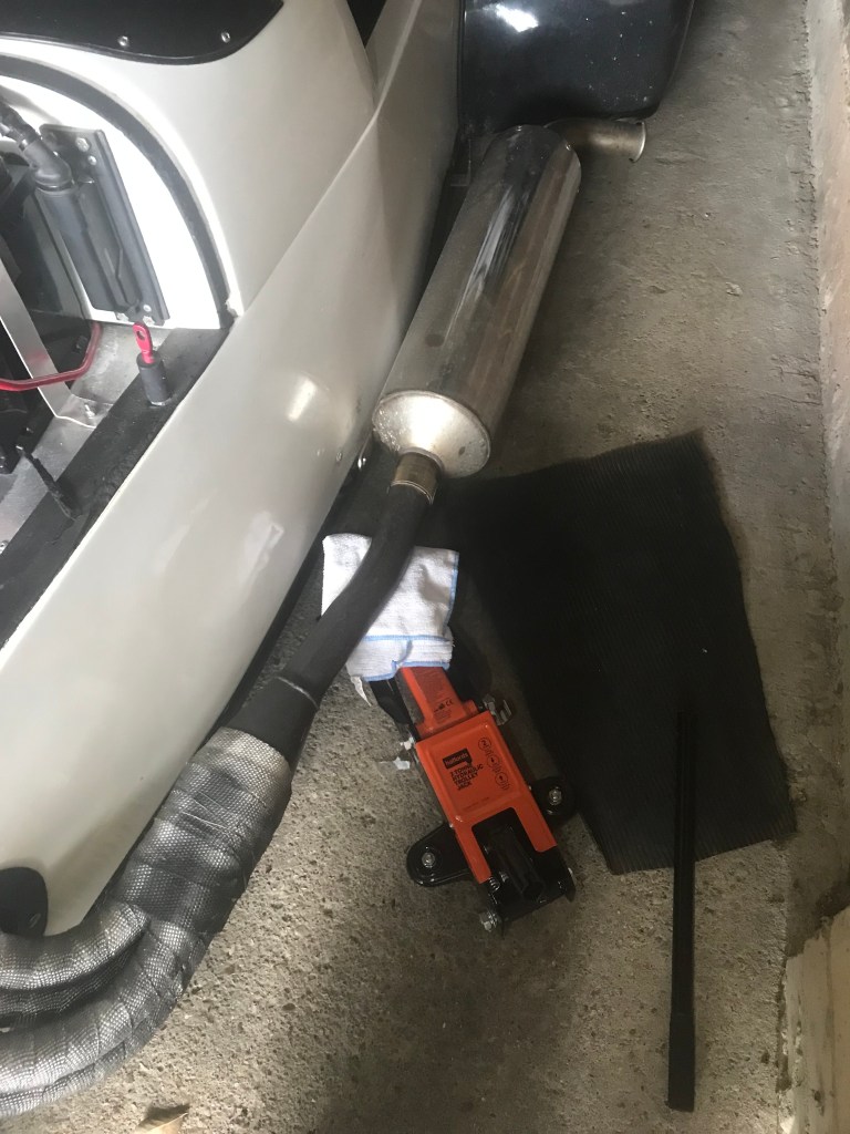 So I’m stuck with the exhaust supported by a jack until the parts arrive sometime in the middle of next week.